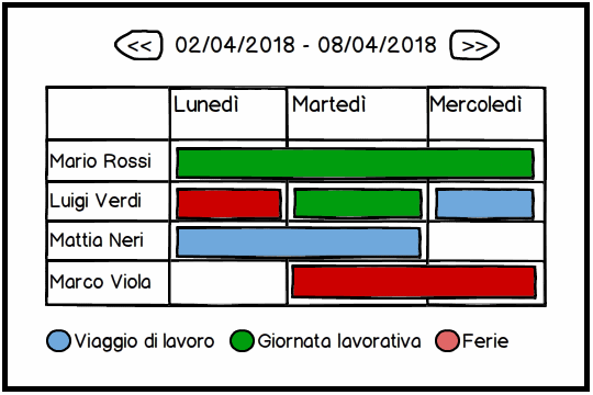 La soluzione ti permette di tenere sotto controllo la schedulazione di un gruppo di persone (membri di un team di progetto o colleghi di dipartimento) attraverso una tabella di facile consultazione.